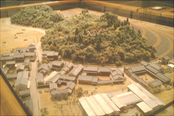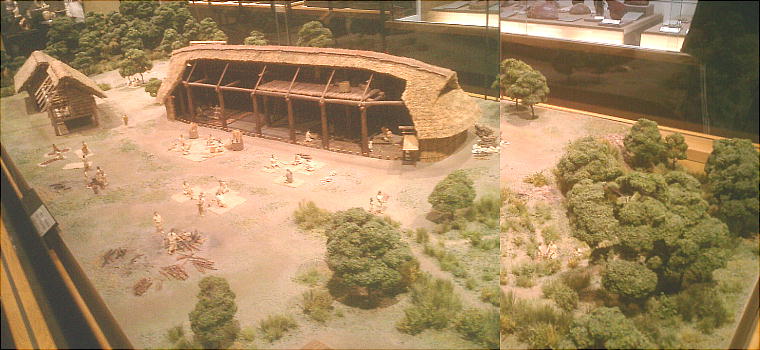 横浜の大塚遺跡(前1世紀) のジオラマ。関東における代表的な環濠集落。村のまわりに濠と