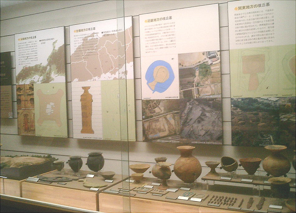 もっとも大きな前方後円墳は、長さが486mに及ぶ。ここでは、古墳の形や出土品の