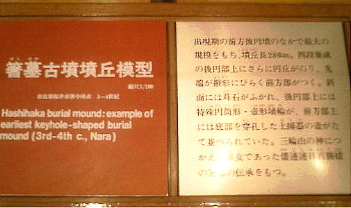 箸墓(はしはか)古墳の墳丘模型。3世紀。出現期の前方後円墳