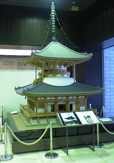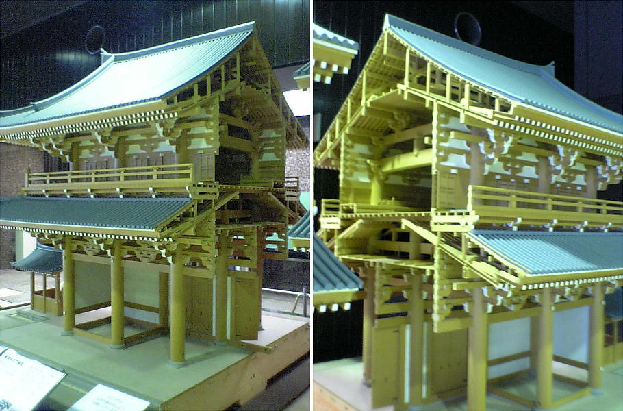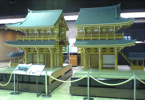 羅城門の復元模型。平城京の入口の正門で、高さが20mあまりあった。 都城には役
