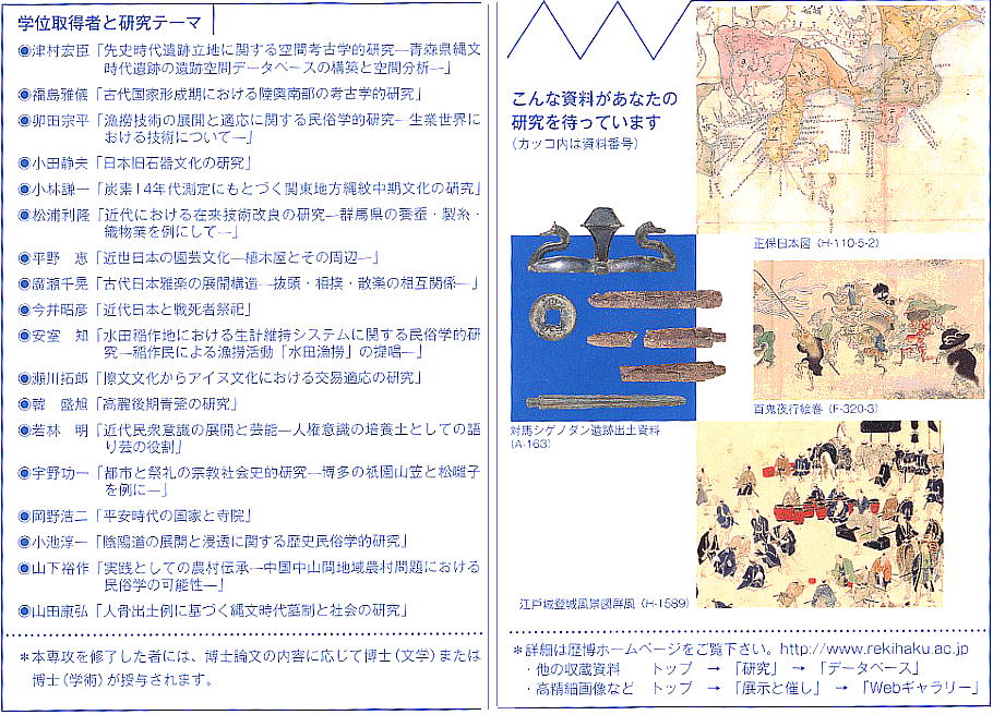 歴博は組織上も研究を重視し、開館当初は情報資料研究部、歴史研究部、考古研究部、民