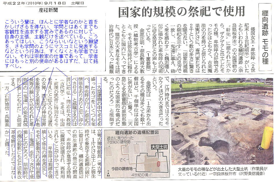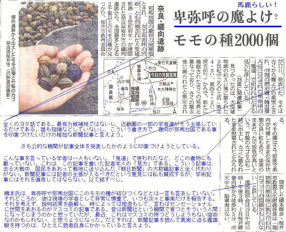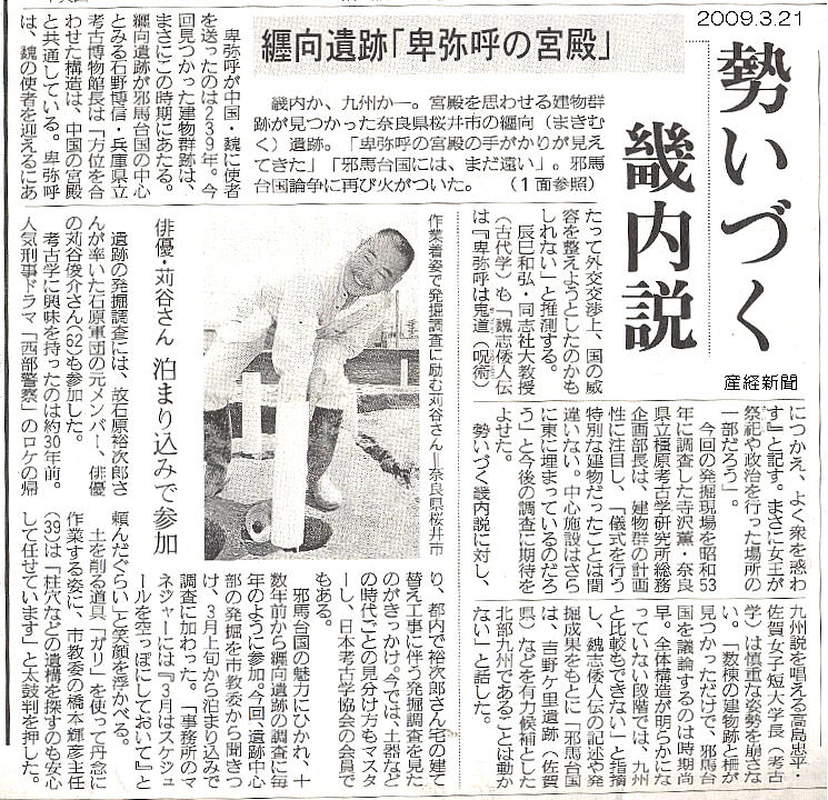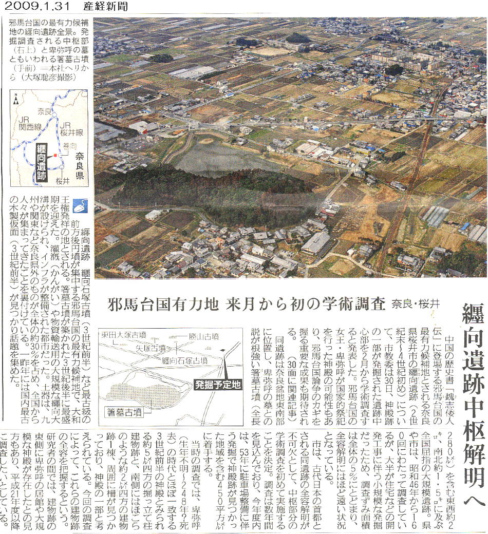 の築造を3世紀初頭と発表したことで、がぜん、邪馬台国畿内(大和)説の有力な根拠として、新聞紙上を賑わせたのである。