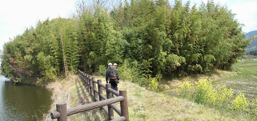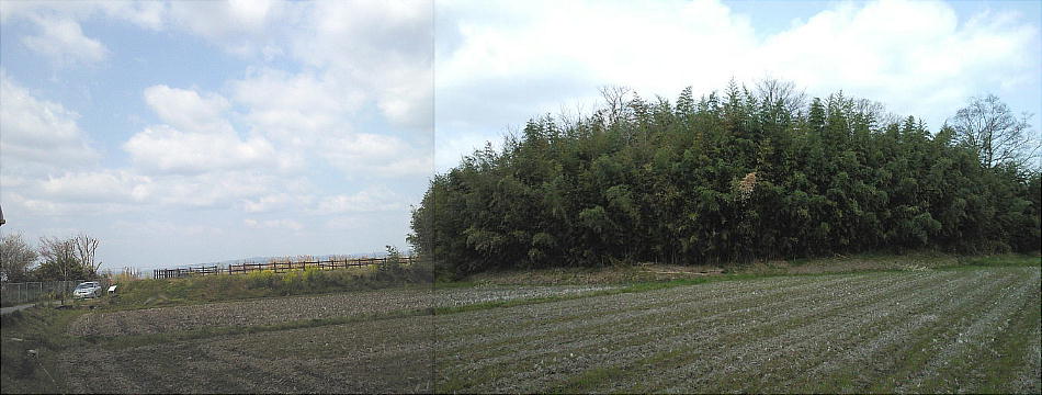 ノ山古墳はここから東約200mに位置している。箸墓は定期的に整備作業が行われているらしく、外縁部はキレイに枝打ち