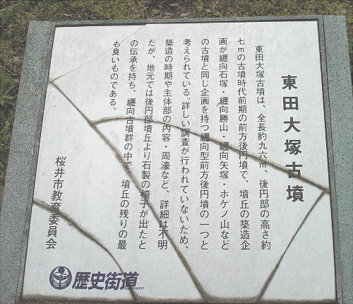 失なっているが、大きさでは全国で11番目、奈良県下では3番目の規模を持つ。前方部が撥(ばち)形に開く墳形を持ち、一