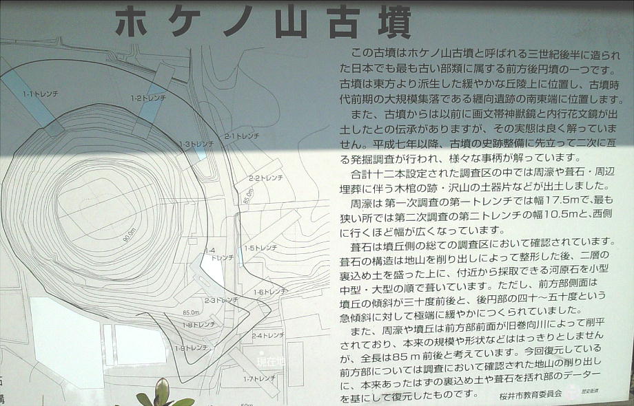 たと推測されているが、いま残存し面影をとどめているものは数基である。今年3月に最古の前方後円墳と注目を集めたホケ