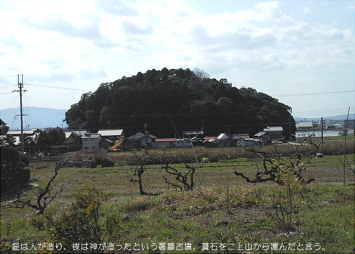 はか)とよんだ。ところがこの墓は昼は人間が築き、夜は神が造った。しかもこの墓を築造するのに多くの人が大坂山から箸