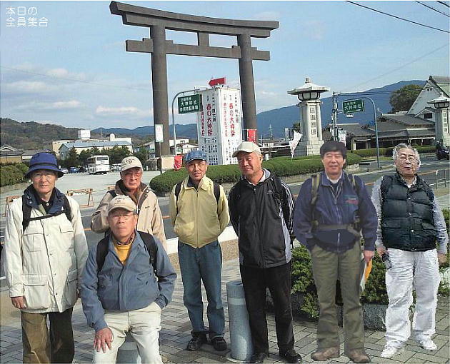 「桜井市立埋蔵文化財センター」を見学した後、三輪神社大鳥居の前で。2人はvirtual参加やね。