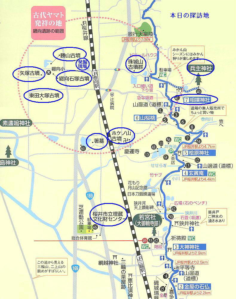 その後巻向に点在する初期古墳群、石塚、勝山、矢塚、東田大塚等々を見て、時間があるので、櫻井の文化財センター、三輪神社