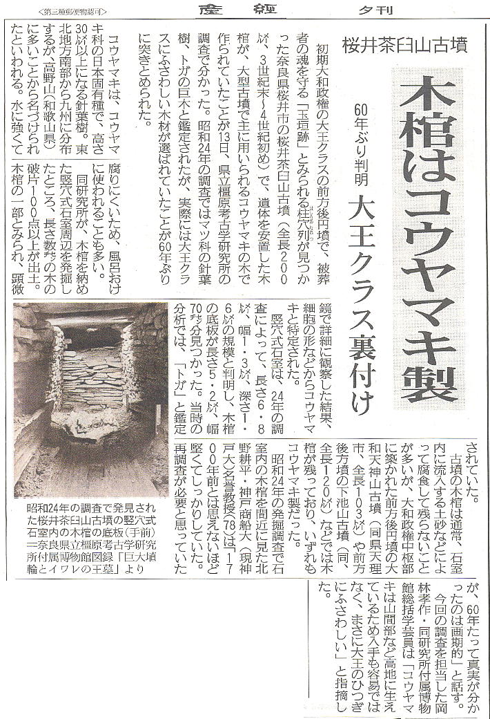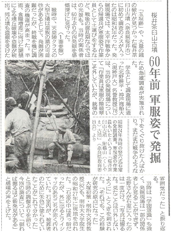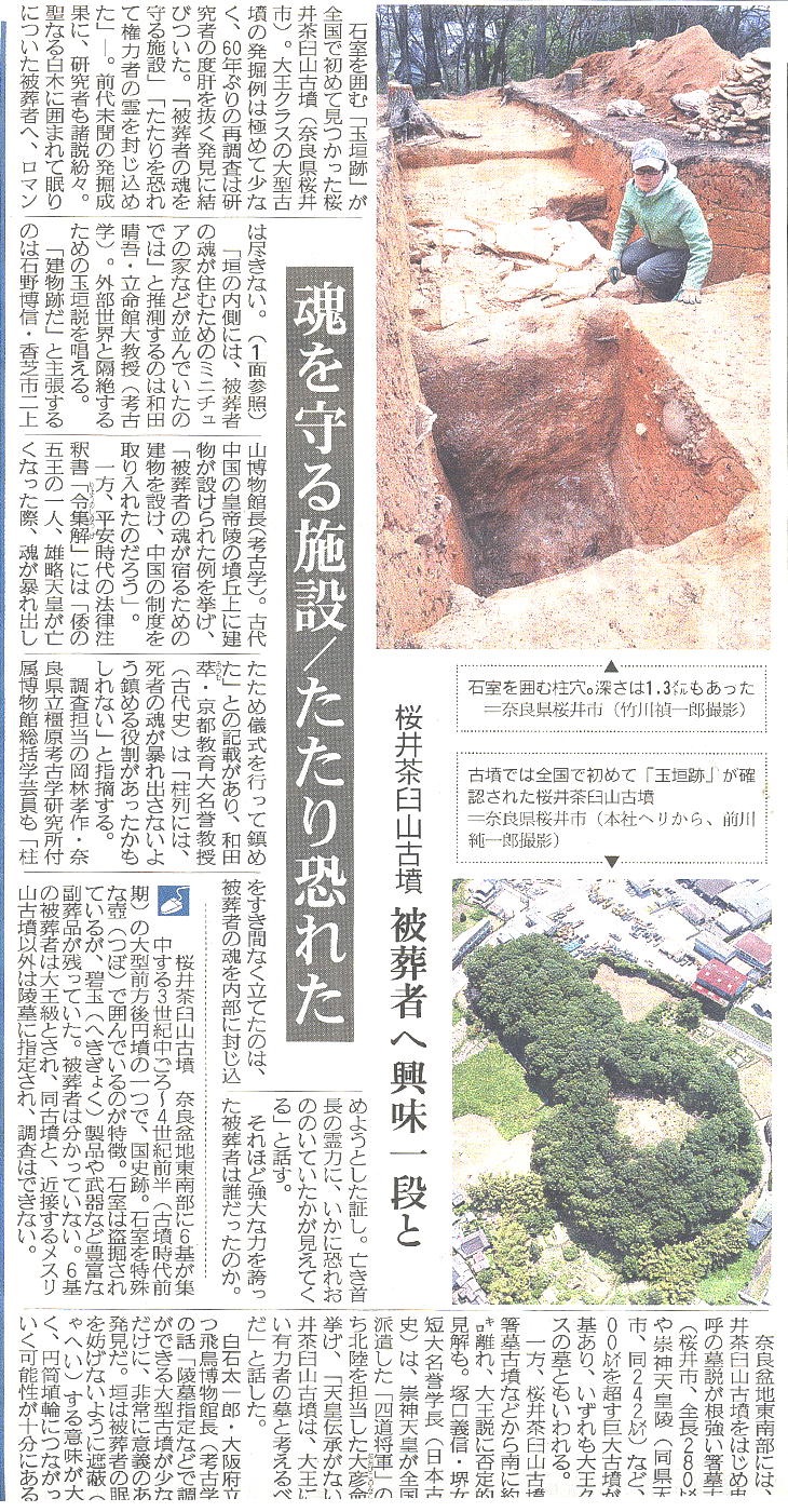 なもので、出土品には玉杖や玉葉、鉄刀、鉄剣などがある。墳丘の規模や副葬品などから大王級の人物が葬られたと推測されている。