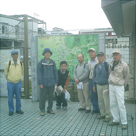 JR桜井駅南側の付近案合図の前で記念撮影。さぁ、例会のスタート。