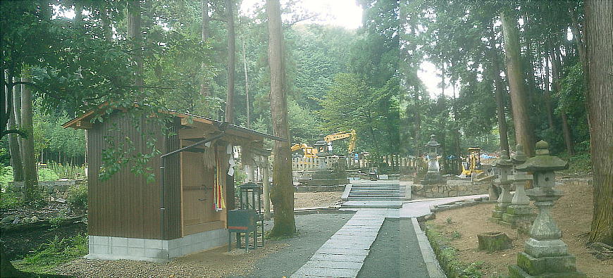 この神社は現在全面的に改築中だった。上左の小さな小屋のような建物が臨時の拝殿である。なんとまぁ。