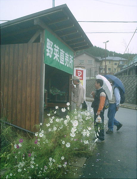 例によって野菜直売所をヒヤカす皆さん。ほんとに驚くほど安いのだが、白菜抱えて歩くわけにもいかんしねぇ。
