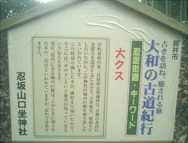 奈良県桜井市の東部に「忍阪」という名の集落がある。標高292.5mの外鎌(とがま)山と標高245mの鳥見山の間を流れる粟原