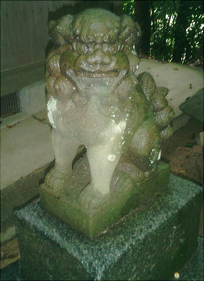 見事な大クスと雨に打たれて泣いている狛犬。
