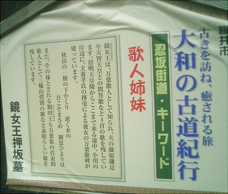 しかし、古くは「忍坂」とか「押坂」と書かれ、読み方も”おさか”、”おしさか”とさまざまだった。この忍阪の集落を抜けて女寄