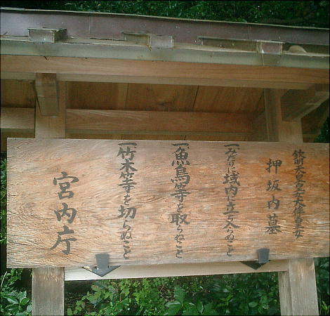 御陵: 押坂内陵(おさかうちのみささぎ:奈良県桜井市大字忍阪)