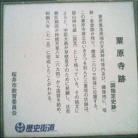 ないが、粟原集落南端の天満神社境内とその隣接地に、塔・金堂跡が残る。