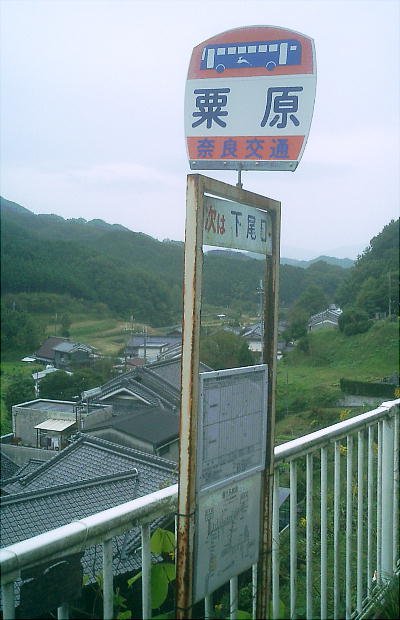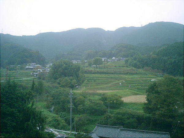桜井行きのバスを待つバス停から見た忍阪の光景。鄙びていいところですなぁ。