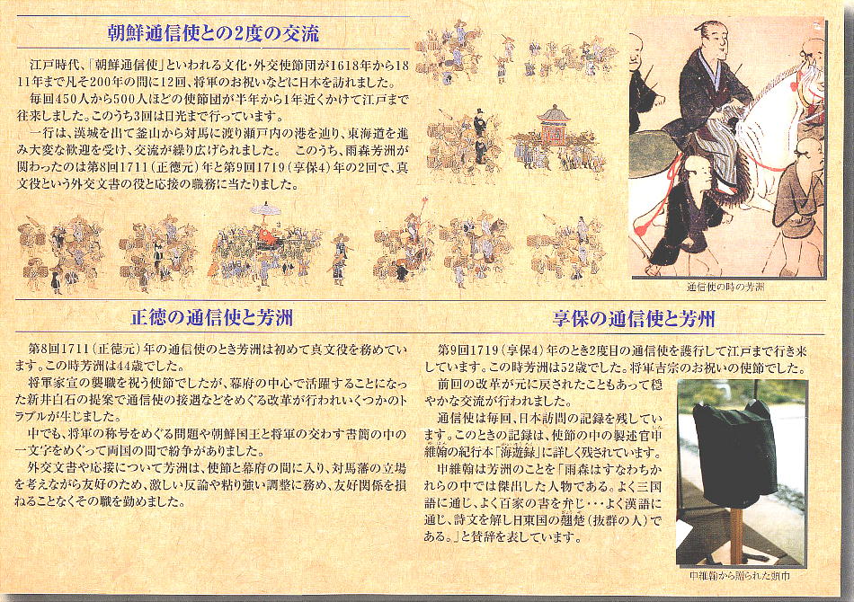 雨森芳州については、7年前の夏に夏に訪れた時のReportに詳しく解説しているので、そちらを参照頂きたい。