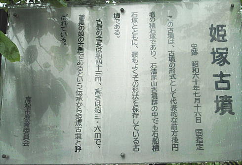 石清尾山古墳群は、積石塚による前期の古墳群としては香川県下はもとより全国でも類例を見ない規模と内容を持っている。後世に