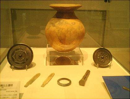 4、鉄刀1、鉄鑿1、鉄やりがんな1、鉄鏃4、土師器2、等々が見つかっている。多数の遺物のなかでも,内行花文精白鏡と呼ば