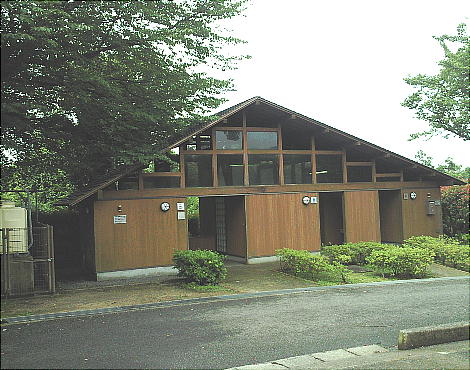 大麻山山麓の地図を見る。この古墳の近くにキャンプ場があるので、綺麗なトイレが作ってある(上右)。