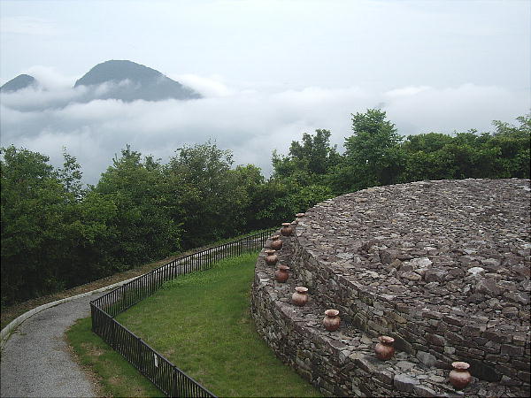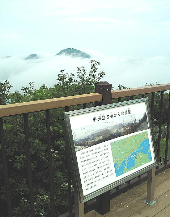 さぁ見えた。雲海と復元された「野田院古墳」の後円部だ。ここまで綺麗に復元されると、荒れていた古墳との対比にとまどう。