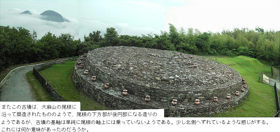 の石室が並ぶ方向とも全く関連がない。しかし「作業工程5」の説明にもあるように、後円部が完成した後、前方部との連結部分に
