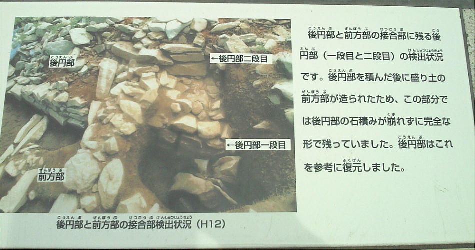 これはまだ復元前の状態。これだと岩清尾山古墳群にあった古墳とそう変わらない形態をしている。前方部に石が無いのも判る。
