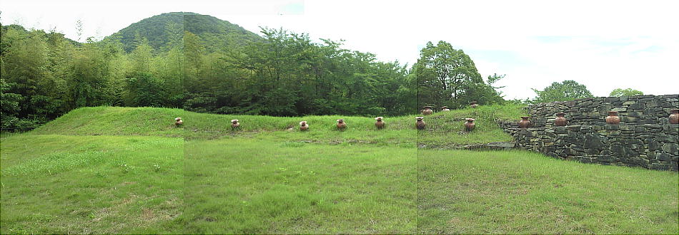前方部は盛り土であるが、どうせならこっちも積石造りにして欲しかったような気もする。盛り土にする理由が何かあったのかも