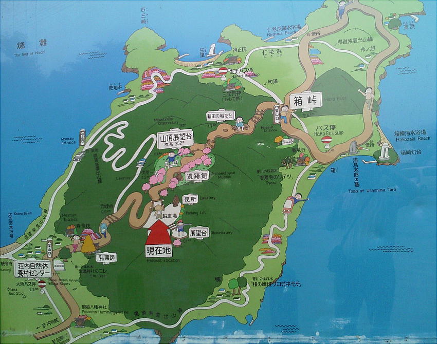 詫間駅から約25分で山頂駐車場に着く。紫雲出山山頂駐車場には、約80台の駐車スペースがある。