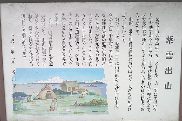 燧灘(ひうちなだ)に突出する岬上の先端にそびえる標高352メートルの紫雲出山山頂にあり、絶好の視野と眺望とに恵ま