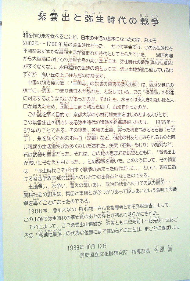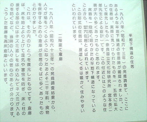 介はしてあるが、展示品もわずかで、周囲に住居の復元がすこしあるだけの遺跡だった。しかしまぁ、ここで弥生時代に暮ら