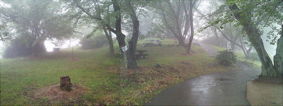 何度かここにも登ったらしいが、晴れればすこぶる眺望のいい場所だと強調していた。雨で残念。