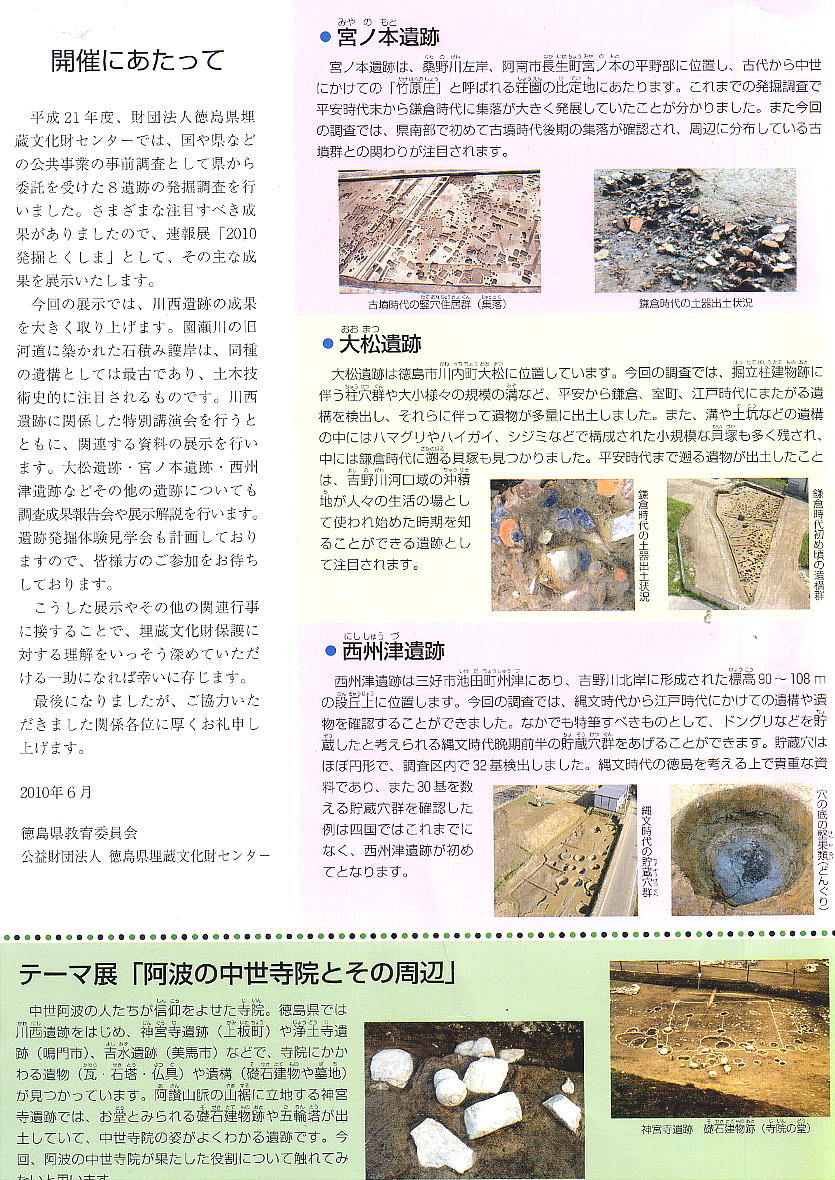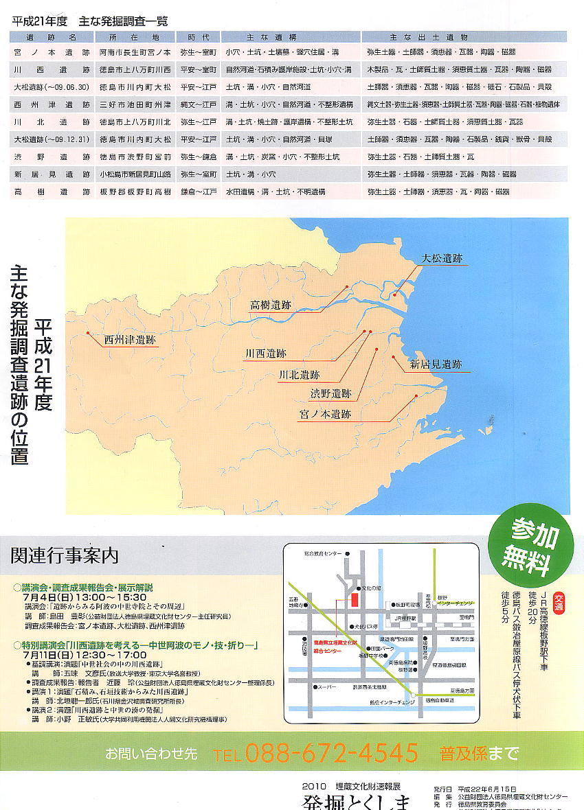 徳島県立埋蔵文化財総合センター 〒779-0108 徳島県板野郡板野町犬伏平山86-2 電話 088-672-4545
