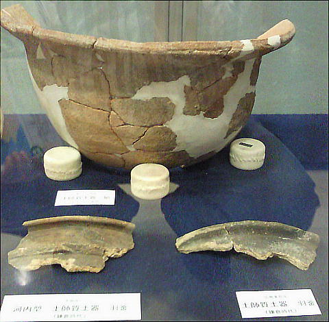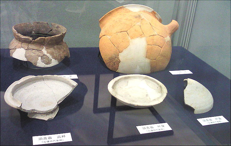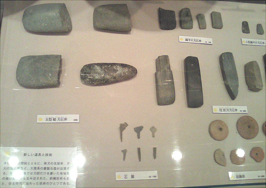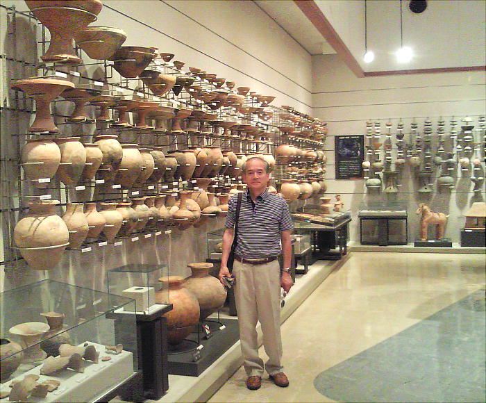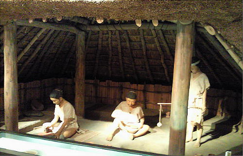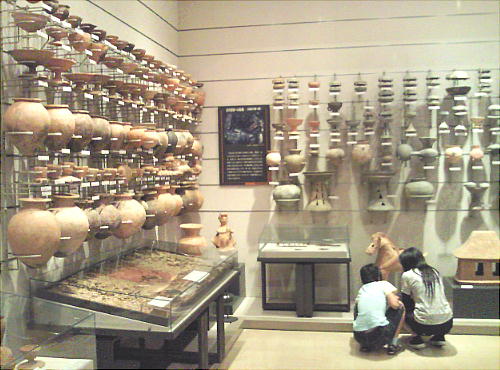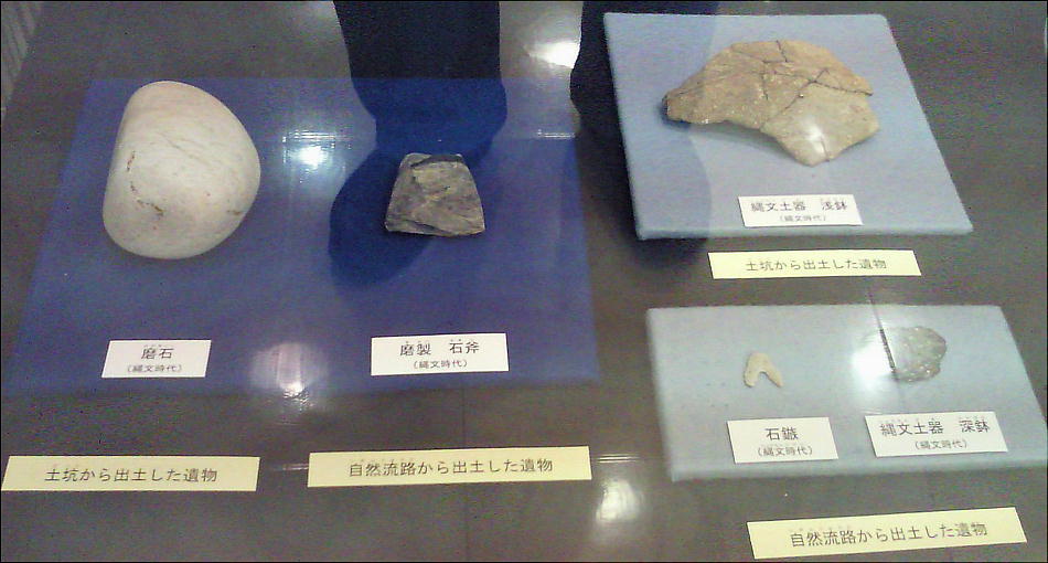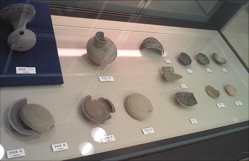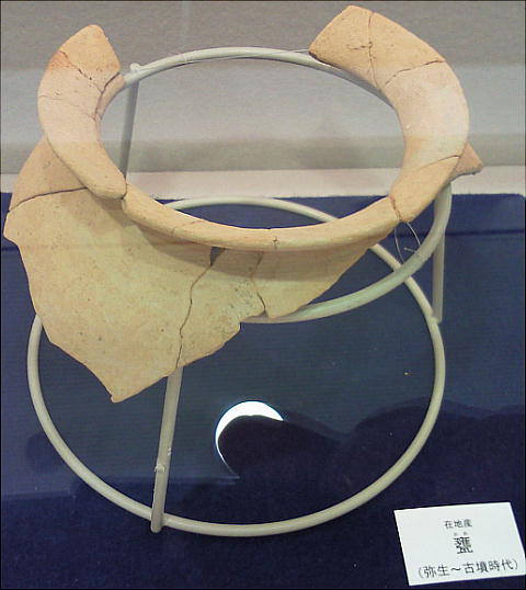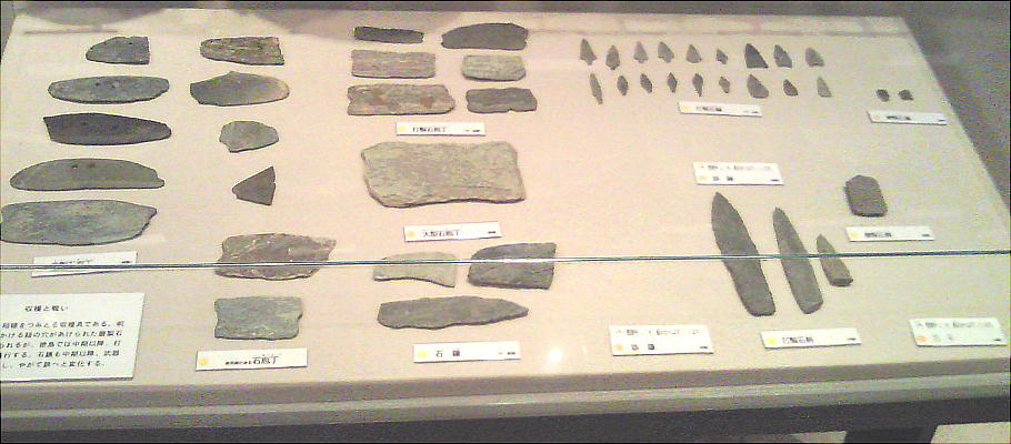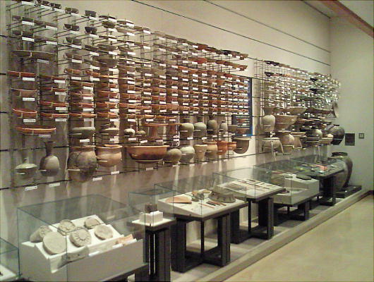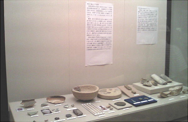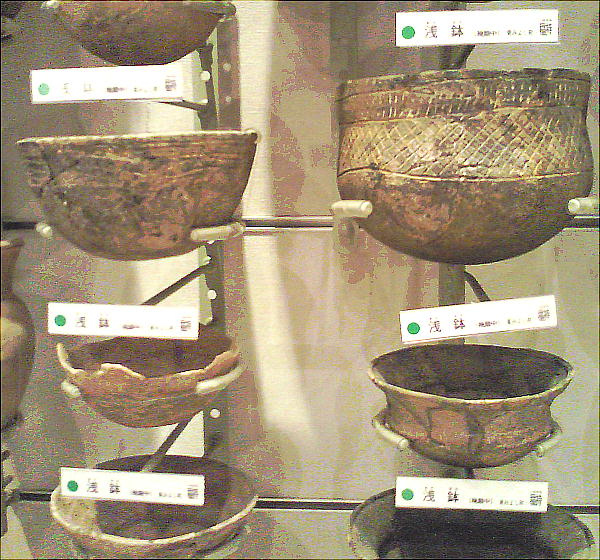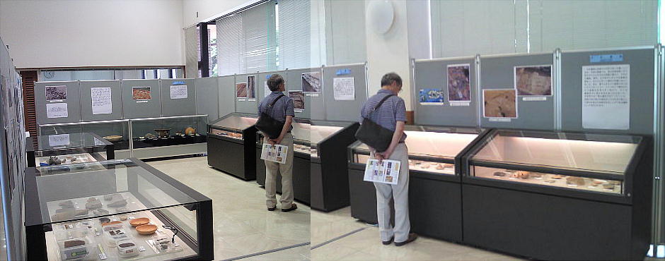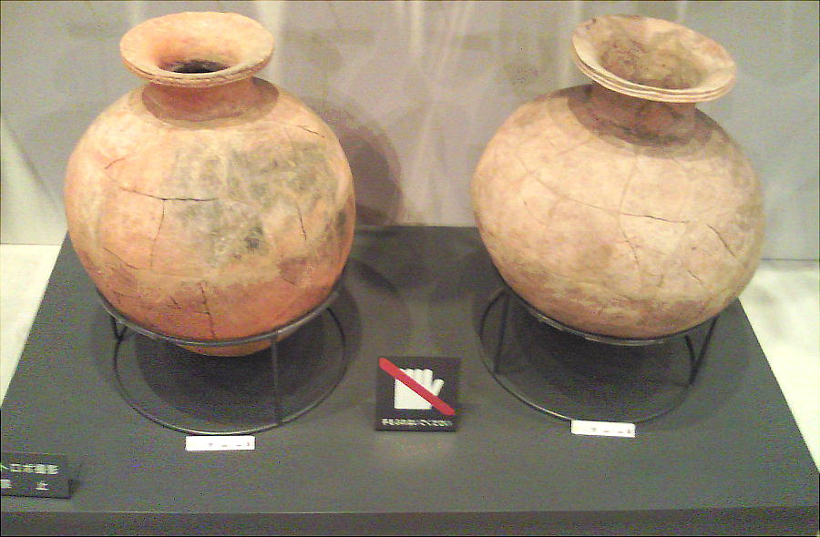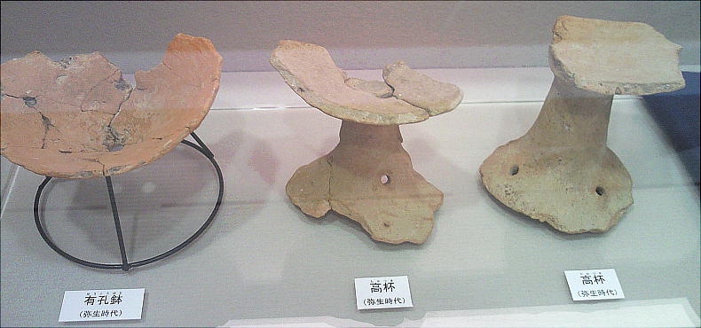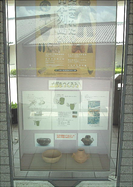 壁面に、縄文、彌生、古墳時代と、時代区分毎の土器が所狭しと並べられていて、一目で時代の違いが判る。
