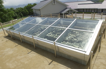 駐車場から展示室へ向かう途中の丘陵で公開されている。銅鏡と鉄器の出土状況がレプリカで再現されている。