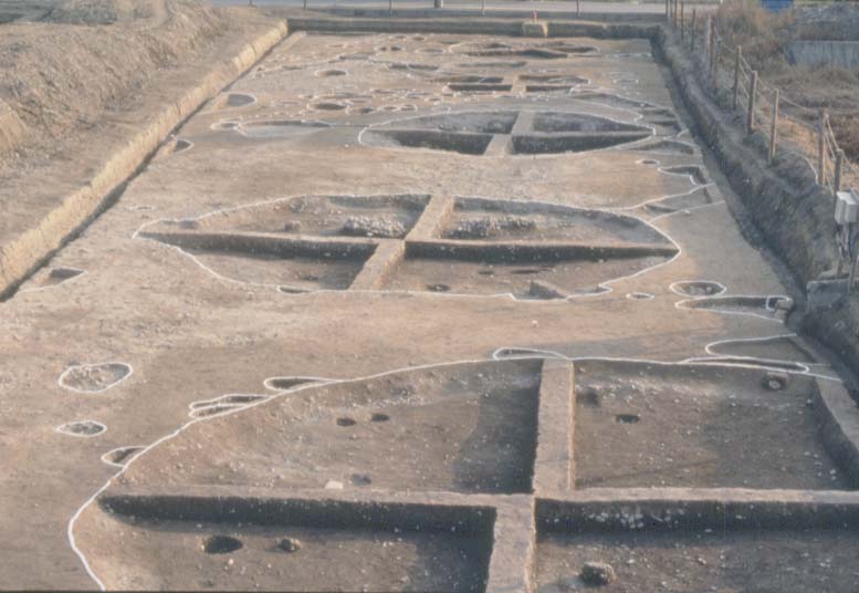 現在の地表面から2〜4m下層より発見された低地性の集落。1994年(平成6年)〜1998年(平成10年)にかけて行われた道路建設に