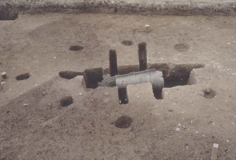 竪穴住居跡に隣接して、銅鐸埋納坑が検出されました。集落内での銅鐸の出土は、全国的にも類例が少なく、銅鐸出土数の多い徳島