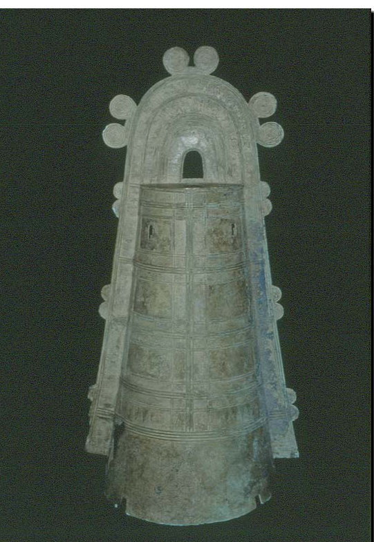 銅鐸は最新式のものといえます。古いタイプの銅鐸は小さくて、音を鳴らし「聞く」銅鐸、それがだんだん大きくなり、置いて「見る」