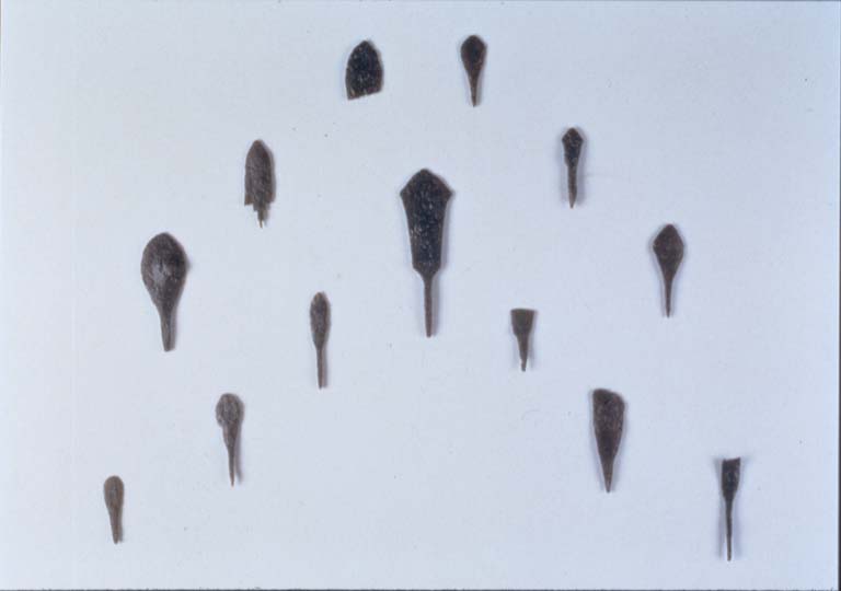 終わりごろのものです。大きいもので長さが約10cm、幅が約3cmあります。おそらく戦いの武器として使われたのでしょう。