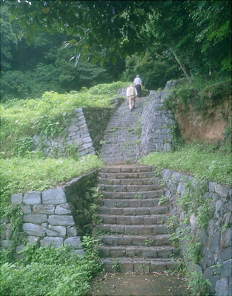 ここへ上る石段も結晶片岩で作られていて、近くで手に入る「阿波の青石」として広く分布している。2003年に発掘調査