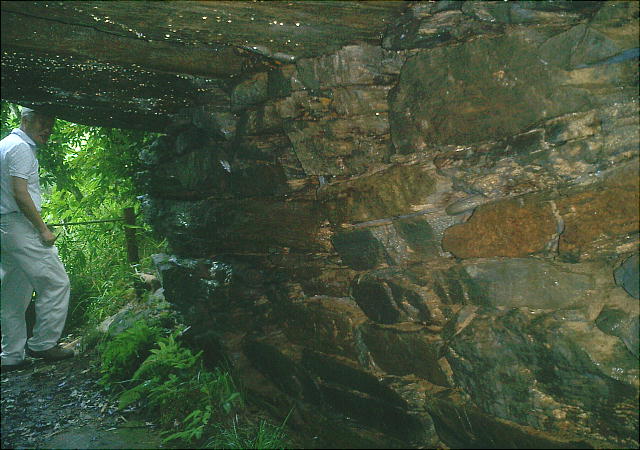 玄門下に梱石がある。玄室はまぁまぁの大きさ。側壁の石積みは基本的に割り石の横積みだが、左側壁だけが巨大な一枚岩。