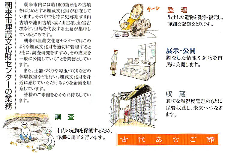 る。これらの貴重な歴史的遺物を適正な管理のもとで調査・保存・公開するために整備された施設で、但馬の歴史・文化に触れられ