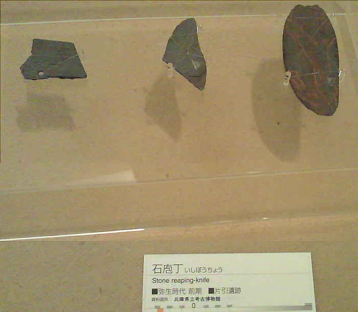 石の穂摘み具(石包丁) 人々は、土地や貯えた食べ物をめぐって争いだした。この争いは、権力をめぐる戦いへと発展していった。