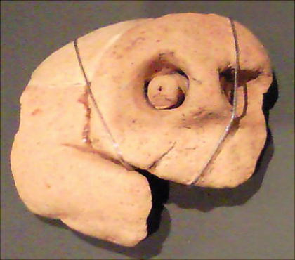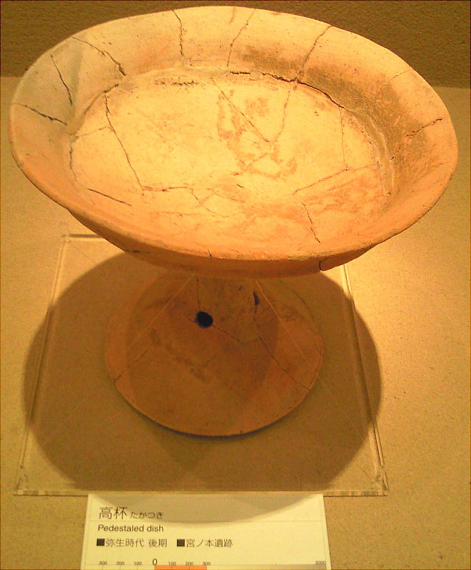 角杯が多いが、柿坪遺跡で見つかったのは柔らかい素焼きの(須恵器も素焼きであるが)、赤焼きの状態で出土している。