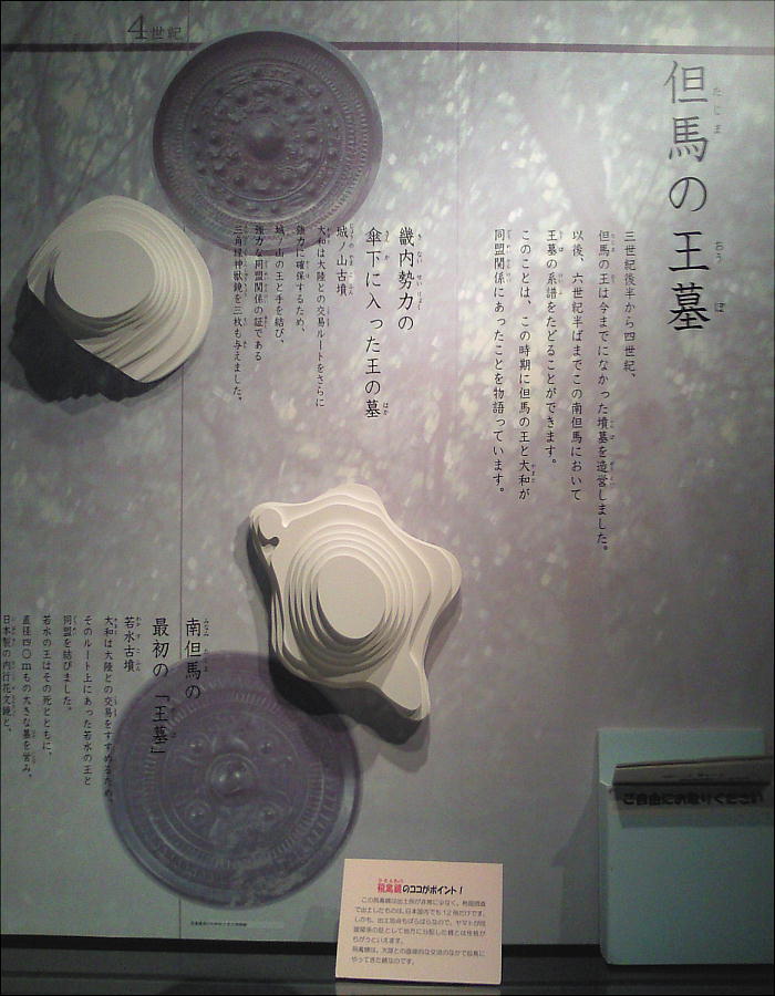 強大な武力を背景として、力で但馬地域を治めた。城ノ山古墳にはあの有名な三角縁神獣鏡が副葬されていた。この古墳から出土