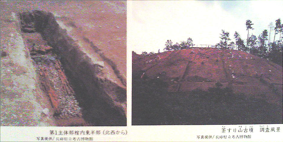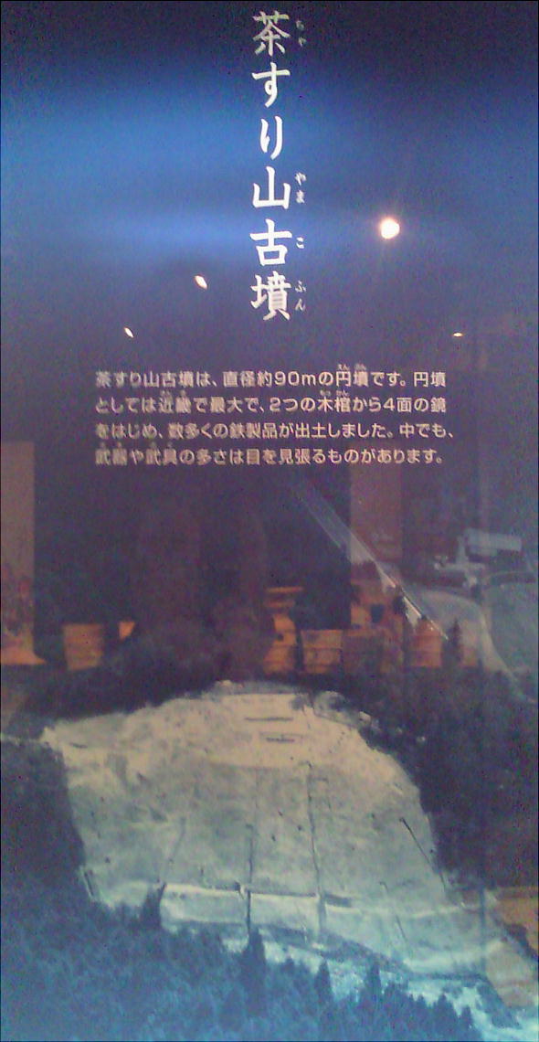 茶すりや山古墳は近畿地方で一番大きな円墳であり、たくさんの武器や鉄製品が副葬されていた。茶すり山に葬られた王は武勇に