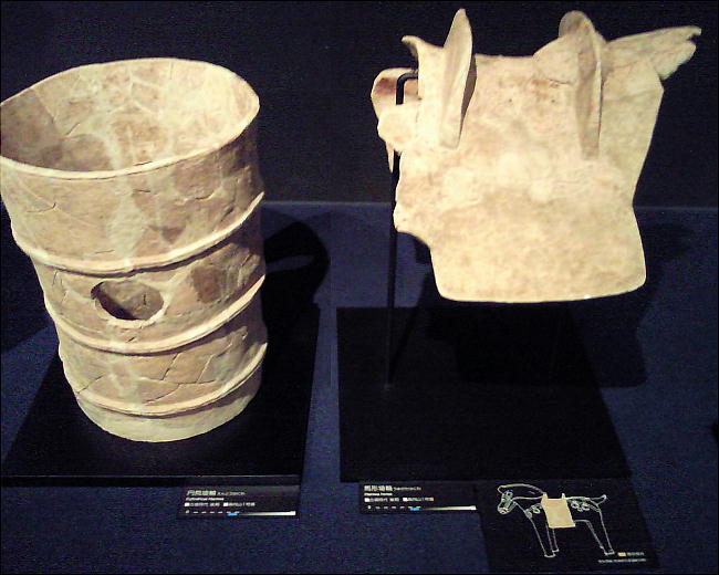 角杯は馬上の人が鞍にぶらさげて、いつでも水が飲めるし馬乳酒も飲める、そういう杯である。牛の角で作っている。角杯が出土