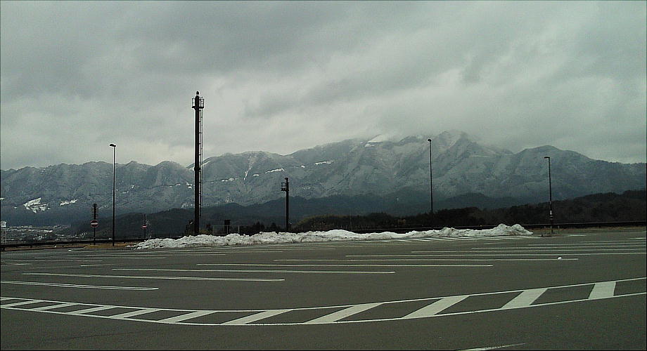見学で納得しておこう。ここ数日来降っていた残雪があちこちにあって、今から往く但馬路の雪景色にワクワク。